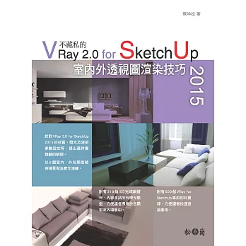 詳細資料ISBN:9789863473763 規格:平裝 / 340頁 / 17 X 23 CM / 普通級/ 全彩印刷 / 初版 出版地:台灣 內容簡介 附DVD一片 用最簡單的方式學超簡單的3D繪圖法! 從暢銷書學全新的SKETCHUP! 每個人都可以是設計師, 速繪居家設計,創造幸福的空間! 室內設計非易事,如果沒有繪圖經驗,靈感將淪為空想。SKETCHUP的出現,改變了設計繪圖的難度。易學、易上手的特性,擺脫以往3D建模與彩現的費時與困難,可以最快繪圖、最佳效果,打造出想像的美好空間! 結合SKETCHUP快速繪圖+V-RAY絕佳彩現! 從基礎到案例實踐,全面感受超效率的設計表現! 本書改版自知名網路書店年度電腦暢銷書,書中從基礎繪製切入,再學習居住空間的繪製、初步彩現的模擬,以及學會運用V-RAY製作更真實的場景表現,接著進入實際空間設計,從客廳、廚房到臥室三大主題,引導學會運用SKETCHUP技巧,同時兼顧設計品質與效率,並彩現出超擬真的3D空間效果。對於一般人來說,可以實現彩繪居家設計的夢想,而對於室內設計師來說,更能契合快速提案的需求。最後,特別納入熱門主題BIM(建築資訊模型),透過SKETCHUP模型轉為BIM。 DVD內容:4小時基礎與關鍵操作影音教學/範例檔 |